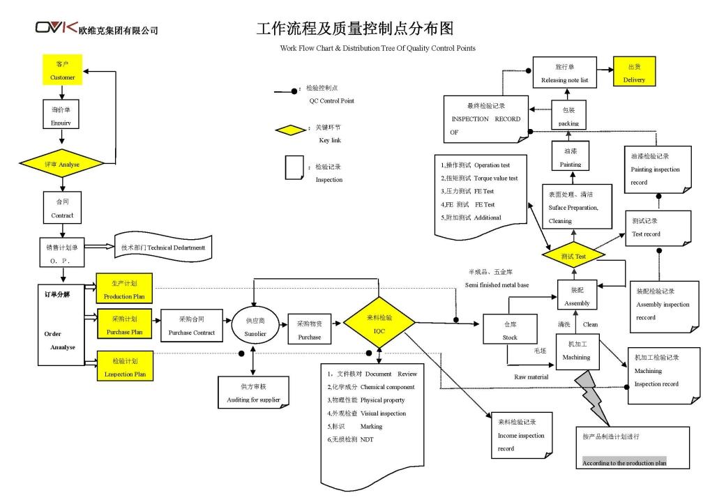 公司按照閥門標(biāo)準(zhǔn)設(shè)立有質(zhì)量網(wǎng)絡(luò)檢測(cè)節(jié)點(diǎn),實(shí)現(xiàn)檢測(cè)項(xiàng)目全覆蓋,生產(chǎn)過程層層把關(guān)。采取定崗定責(zé)、過程檢查、質(zhì)量考核、責(zé)任追究、質(zhì)量追溯、數(shù)據(jù)統(tǒng)計(jì)分析等一系列行之有效的方法,做到關(guān)鍵工序重點(diǎn)控制、普通工序規(guī)范操作,通過對(duì)生產(chǎn)過程的全面控制和對(duì)關(guān)鍵節(jié)點(diǎn)的有效監(jiān)督,提高了工作質(zhì)量,保證了產(chǎn)品質(zhì)量。